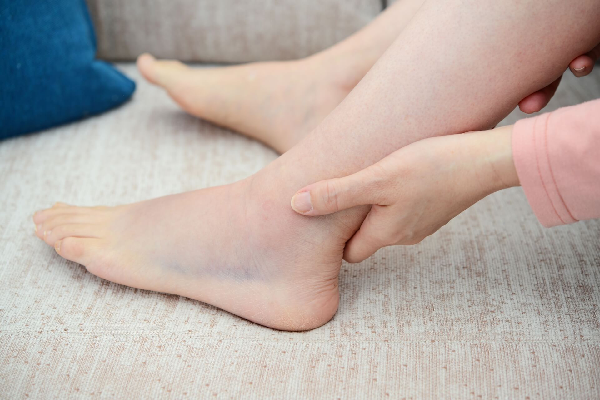 関節に不自然で、なおかつ強い力が加わり、靭帯が損傷している状態です。足首に発生する頻度が高いものの、手首や指の付け根、膝や肩など、人間の体の関節部分であれば、どこにでも生じる可能性があります。
